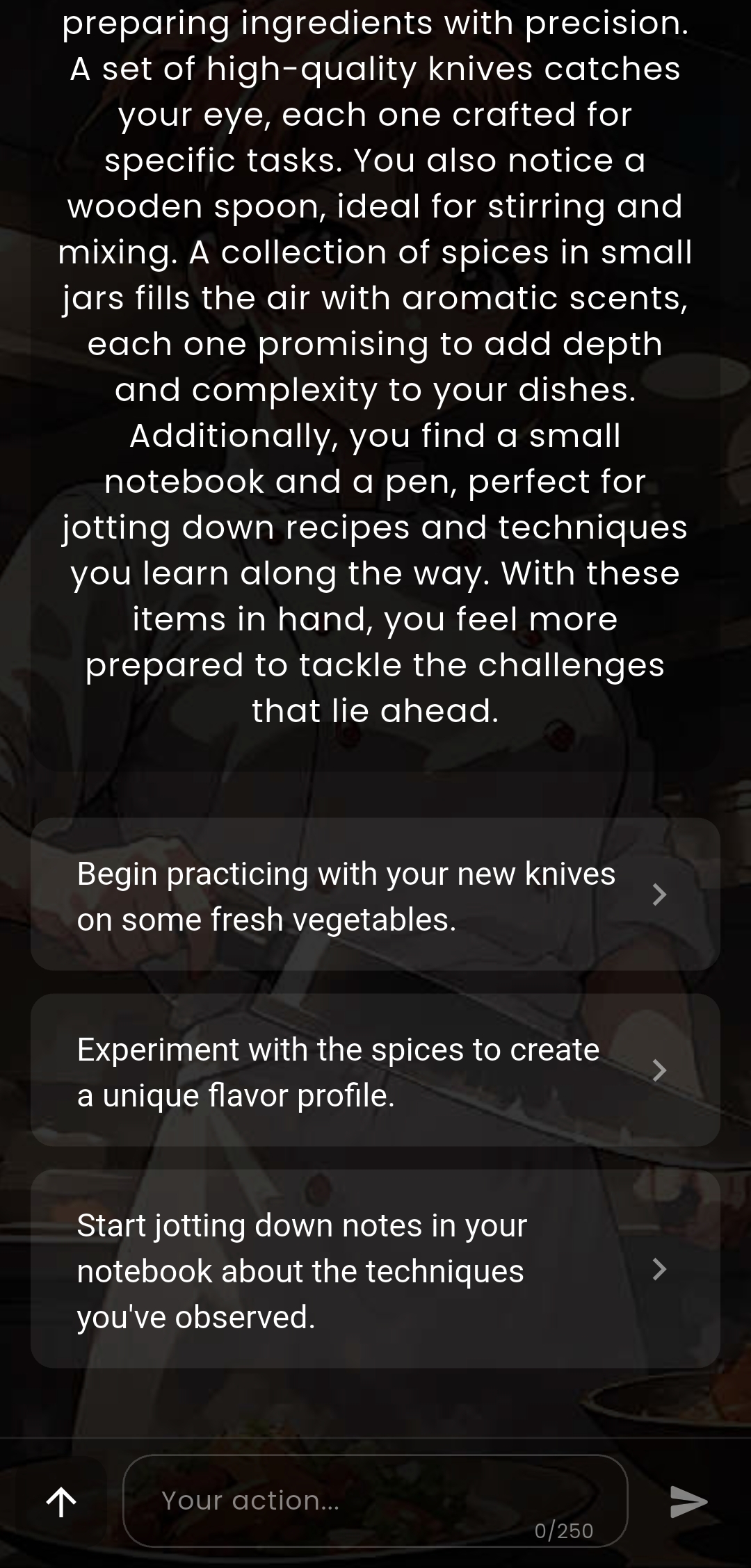 Вводи свои варианты действий текстом, ИИ поймет всё.